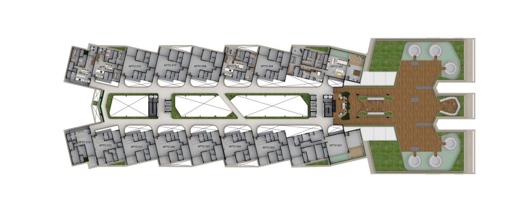 Piscina na frente com um lounge no centro, Loungepool no 5º andar (coberturas) com Wine Bar, Recepção privativa no subsolo com escada e elevador para acesso, paisagismo marcante em todos os ambientes do empreendimento, saída privativa para bicicletas e equipamentos náuticos, localização privilegiada.